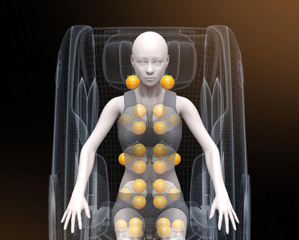 وظائف تدليك متقدمة: يوفر كرسي التدليك تدليك متطور بوسائد هوائية للكتفين والذراعين والوركين والعجول، إلى جانب برامج التدليك التلقائية لمختلف مناطق الجسم.
