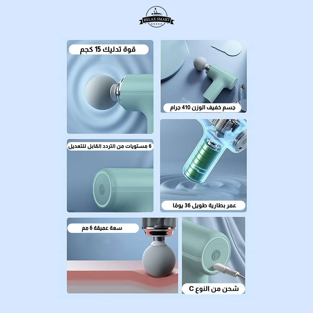 هل تريد الاسترخاء بعد يوم حافل في المكتب؟ هل تريد استرخاء عضلاتك بعد التمرين؟ هل تريد تخفيف آلام الظهر في وقت فراغك؟ كأداة احترافية لاستعادة العضلات، سيكون مسدس التدليك الخاص بنا هو الخيار الأفضل. يلاحظ: يرجى شحن مسدس التدليك قبل الاستخدام. لا تستخدم مسدس التدليك أثناء الشحن. لا تقم بتدليك العظام لأن ذلك قد يسبب الإصابة. يرجى عدم العمل بشكل مستمر لأكثر من ساعة واحدة. لا تنقع في الماء. الابتعاد عن السوائل أو مصادر الحرارة. حافظ على فتحات التهوية خالية من الغبار والحطام. لا تقم بإزالة البراغي أو تحاول إزالتها. في حالة حدوث أي ردود فعل سلبية، توقف عن الاستخدام على الفور