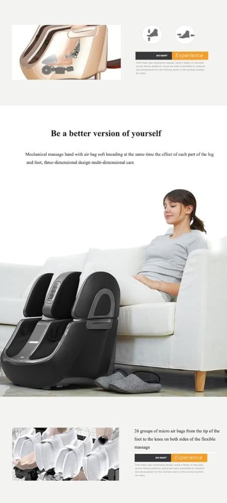 جهاز التدليك المتكامل 2 في 1 يقدم لك تجربة استرخاء شاملة للقدم والساق والفخذ. يجمع بين تقنيات العجن، الضغط، والاهتزاز لتمنحك راحة تامة بعد يوم طويل من العمل أو النشاطات.
