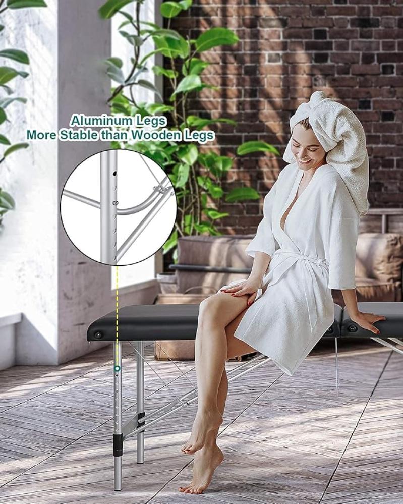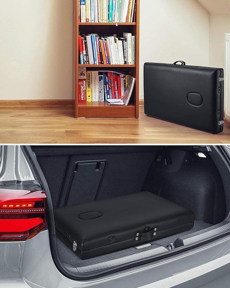 - يمكن تعديل ارتفاع طاولة التدليك من 25 بوصة إلى 34 بوصة عن طريق لف مقابض الضبط على كل ساق للحصول على 8 ارتفاعات مختلفة. كما أن الجزء النهائي من السرير قابل للرفع لعشرة ارتفاعات مختلفة وأقصى ارتفاع هو 18 انش. يمكنك الاتكاء على مسند الظهر حسب الحاجة. بعد ذلك، يعتمد مسند الرأس على جهاز قفل سريع الإصلاح، والذي يمكن من خلاله تعديل زاوية مسند الرأس. قابلة للطي والحمل: نظرًا للتصميم القابل للطي، فإن طاولة التدليك سهلة الحمل، خاصة للمعالجين المتنقلين. سيصبح سرير التدليك بالكامل حقيبة محمولة بعد طيه. تحتوي على مشابك من الكروم ومقابض مزدوجة لقفلها بإحكام. إذا كنت ترغب في استخدامها في المنزل، فإنها توفر أيضًا المساحة عند عدم الاستخدام.