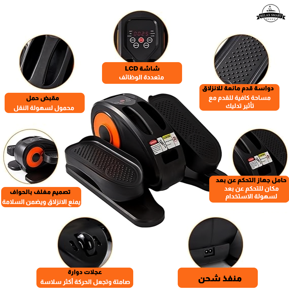 يتميز جهاز التمارين البيضاوي بوجود عجلة موازنة فولاذية ووسادة احتكاك لضمان تجربة تمرين صامتة، مما يتيح لك استخدامه أثناء العمل أو مشاهدة التلفزيون أو القراءة دون إزعاج من الضوضاء.