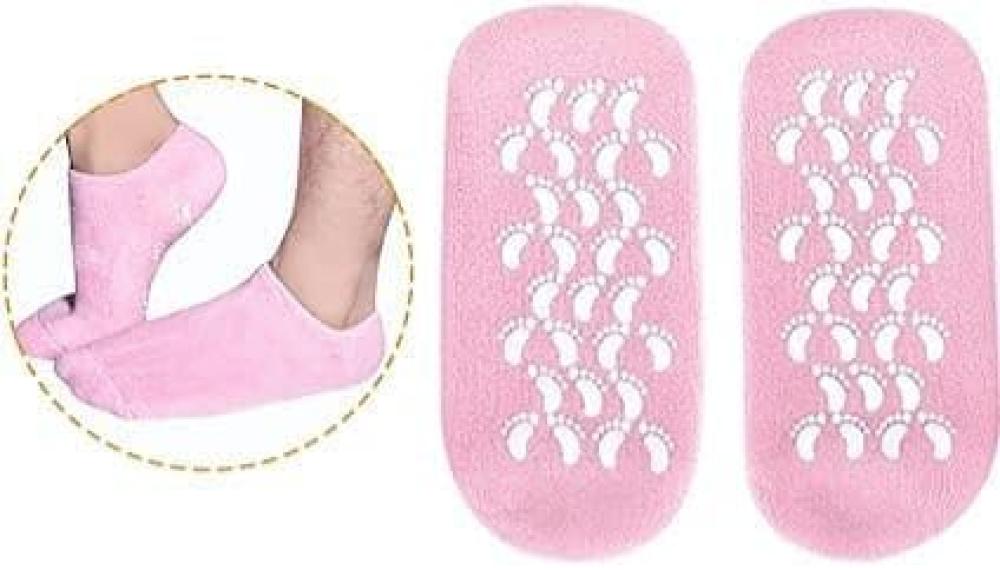 جوارب جل مرطبة ناعمة علاجية لعلاج جفاف القدمين، جوارب جل المنتجعات الصحية لإصلاح وتنعيم بشرة القدم الجافة المتشققة، بطانة جل غنية بالزيوت العطرية والفيتامينات (لون زهري)